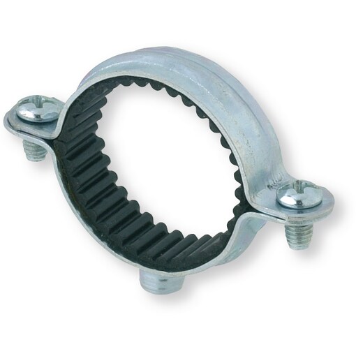 Bright zinc plated steel pipe clip. Thickness 095 a 115 mm width 12 mm to 14 mm. Elastomer in black epdm clamping screw m5x9mm to be used with m7x150 flanged. Technical advice product training or validation of fasteners on site solutions are all services that we wish to bring to our customers.