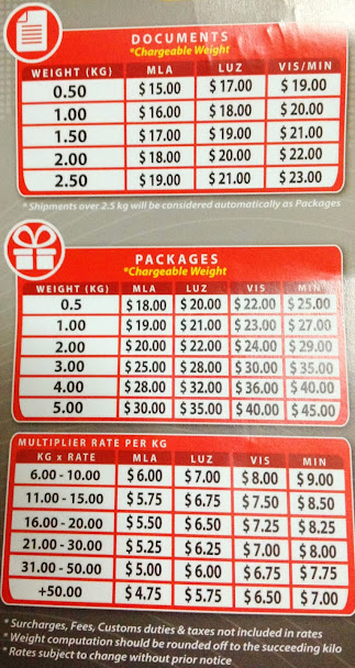 Lbc rates per kilo 2018 philippines. Here are the lbc express rates for the door to door delivery of parcels or packages from luzon to several places in metro manila luzon visayas and mindanao and vice. Here are the lbc express rates for the door to door delivery of documents from luzon to several places in metro manila luzon visayas and mindanao and vice versa. Gadgets appliances and electronic item subject to tax. Surcharge fees customs duties taxes not included in rates.