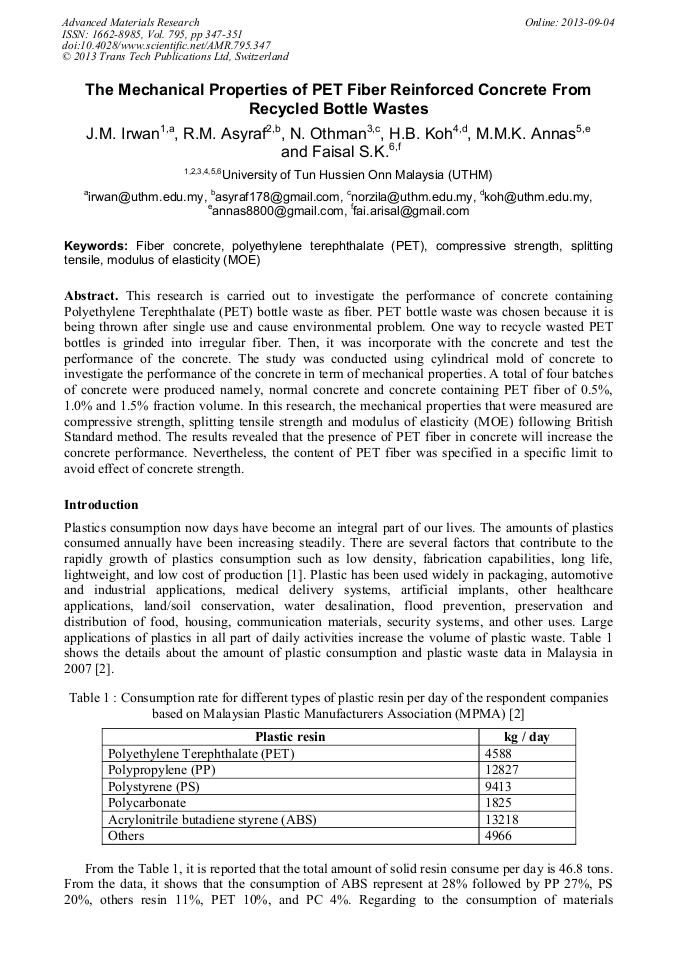 Mechanical Properties Of Recycled Pet Fibers In Concrete