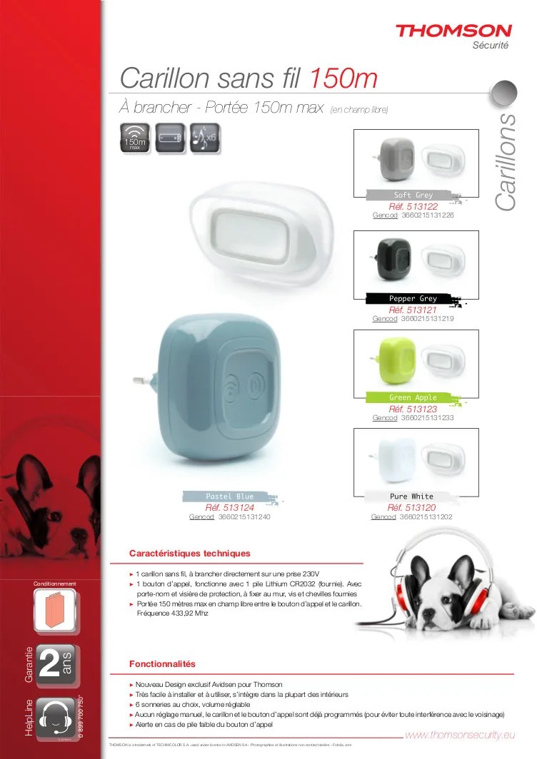 Carillons Portiers Video Thomson Thomson Sonnette Sans Fil 150m