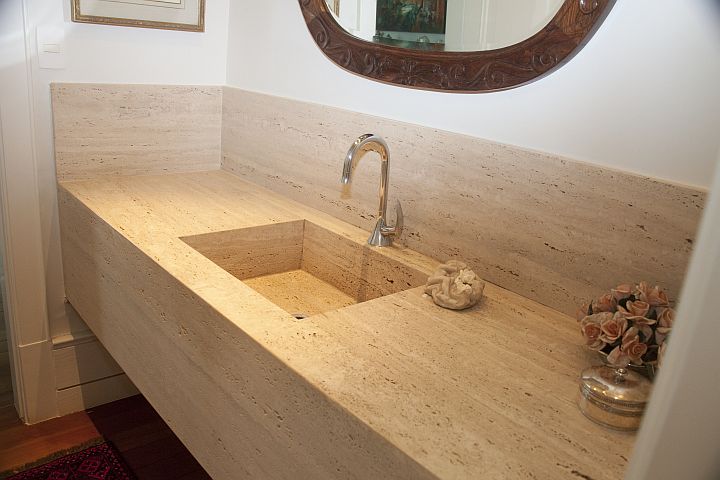 Eis aqui uma bancada de travertino romano. O marmore de cor clara nao e da mesma cor do piso mas nao ha problema nisso o indicado e que ambos fiquem em. Prenota un traghetto tra terracina e ponza.